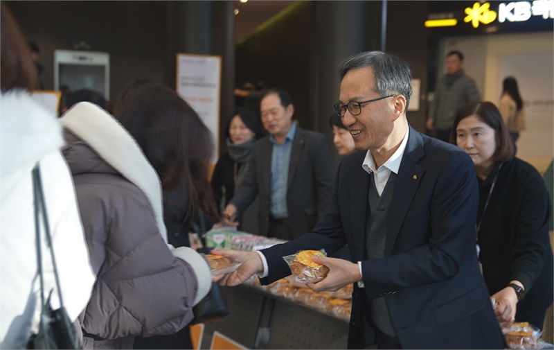 정문철 KB라이프 사장은 본사 1층 로비에서 출근하는 임직원들을 직접 맞이하며 ‘소비자 보호로 가는 길(路)’이라는 의미를 담아 빵과 음료를 전달했다. 고객 보호의 가치를 보다 친근하게 전달하고 임직원 모두가 고객을 최우선으로 생각하는 업무 문화를 실천할 수 있도록 격려했다.