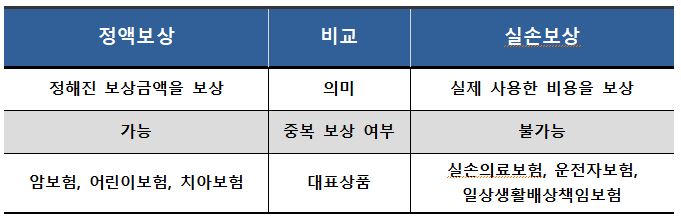 보험금에도 종류가 있다는 것 아시나요? 한 담보에 대해 여러 보험사에서 보험금을 받을 수 있는 정액보상과 여러 보험사에 가입했어도 실제 손해액만을 보상 받는 실손보상으로 나눌 수 있습니다.